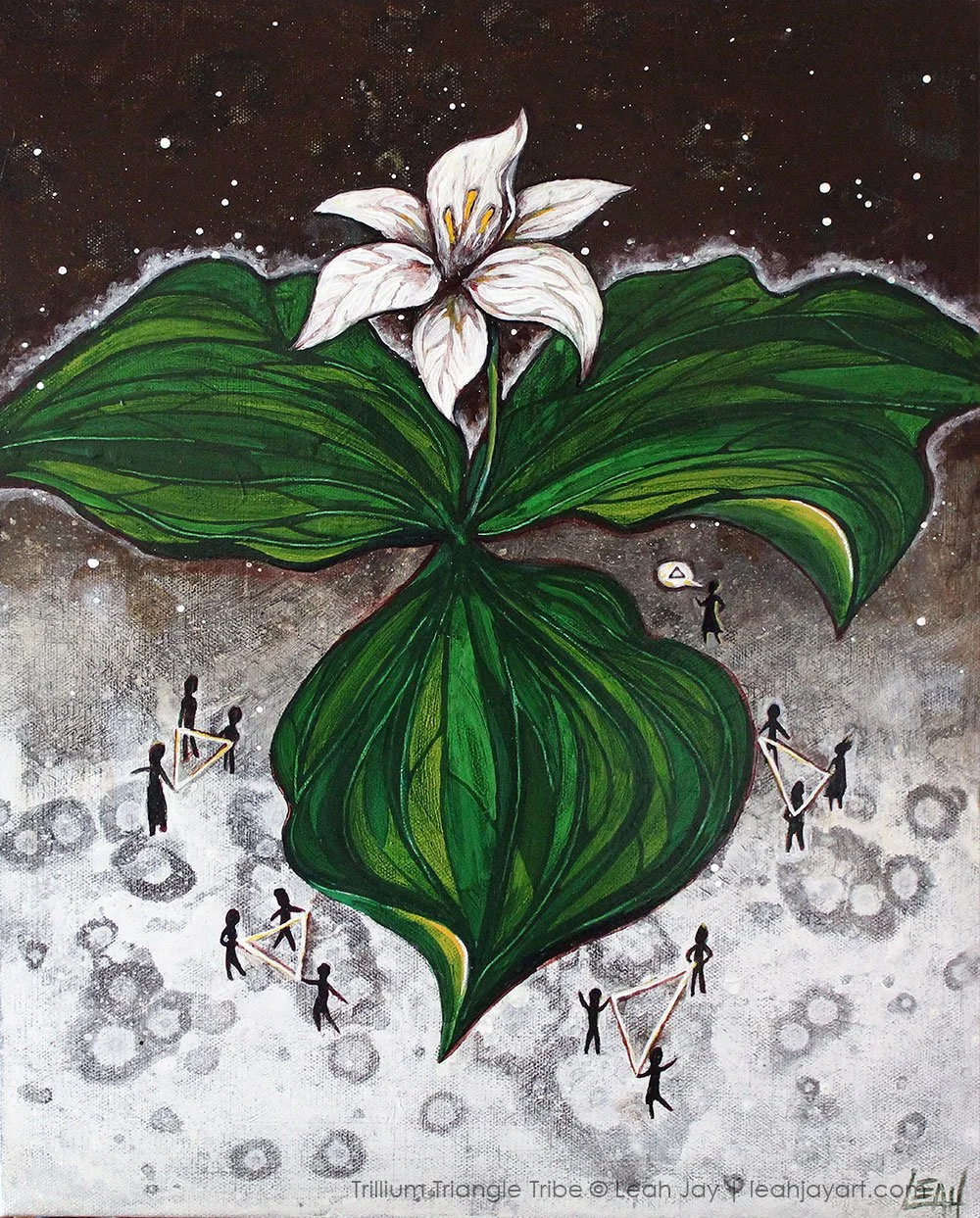 “Trillium Triangle Tribe”, Acrylic on canvas, 14 × 18 inches. $650